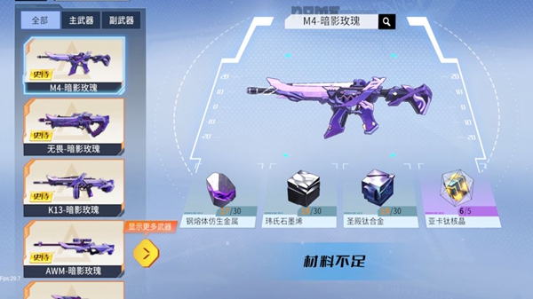 5、研发系统:消耗指定数量材料可进行武器研发,且不同武器所需的材料类型与数量不同。