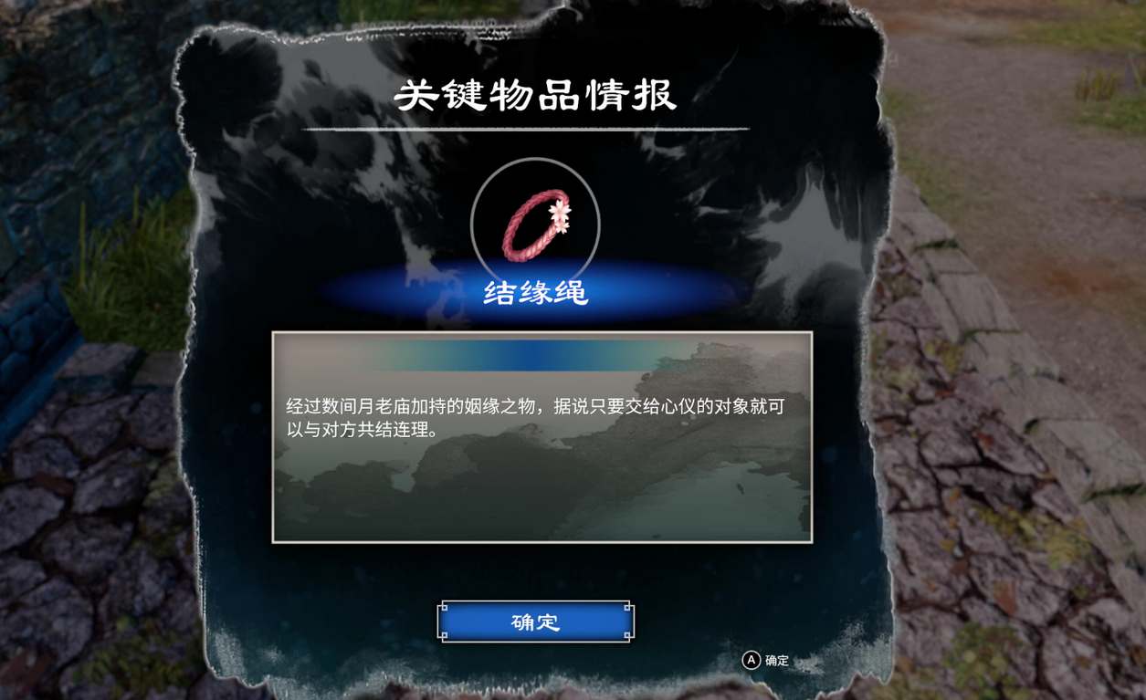 在村口找到彩姨进行对话触发剧情,获得关键道具【结缘绳】。