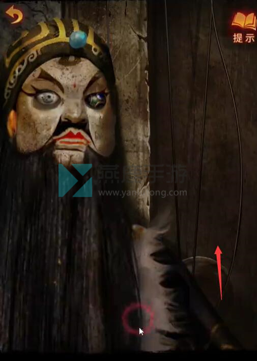 3、离开房间,点击这里的木偶,将【假眼睛】给他安装上。