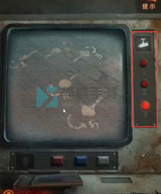 23、根据书中的线索,在监控室点击下面的按钮木偶就会自己动,当手势到达指定的答案,玩家再次点击即可。