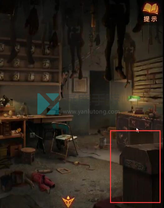 8、进来之后点击桌子上的箱子,按照之前柜子的提示,如图样式即可打开获得【磨刀石】与【刻刀】。
