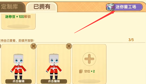 4、然后我们在商店页面中点击右上角的【迷你星工场】。
