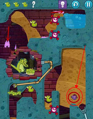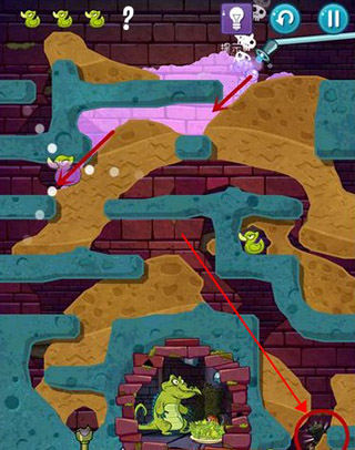 获得关卡及位置:下水道关卡14,位置在屏幕右下角,图中红圈处。