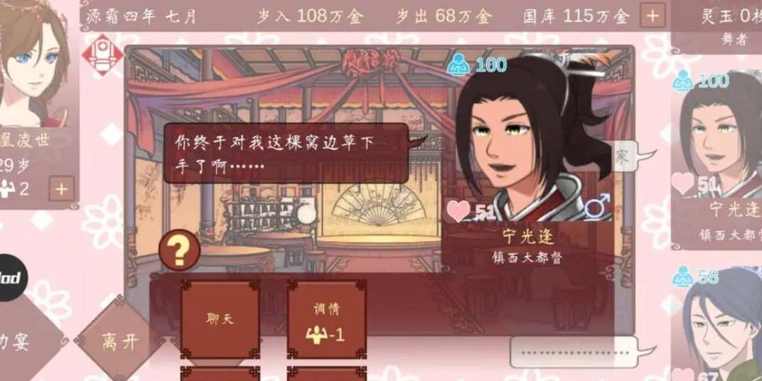 女帝的日常开局应该怎么发展?这是一款模拟类的剧情游戏,开局不同的情况会影响游戏的难度和发展方向,下面为大家介绍一下开局的三种局势以及发展的大致思路,玩家们可以根据自己的情况来选择适合自己的发展路线。