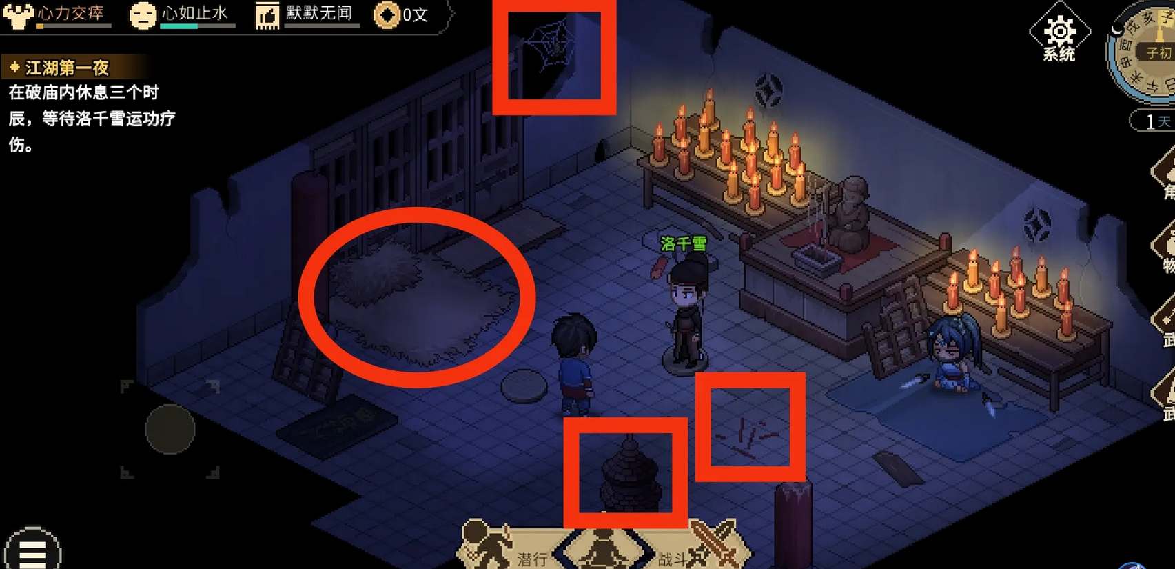3、在草席上睡3个时辰,出门检查地上的香、门口的炉子、墙上的蜘蛛,获得[丁品檀香]和[还魂丹]和[蜘蛛]