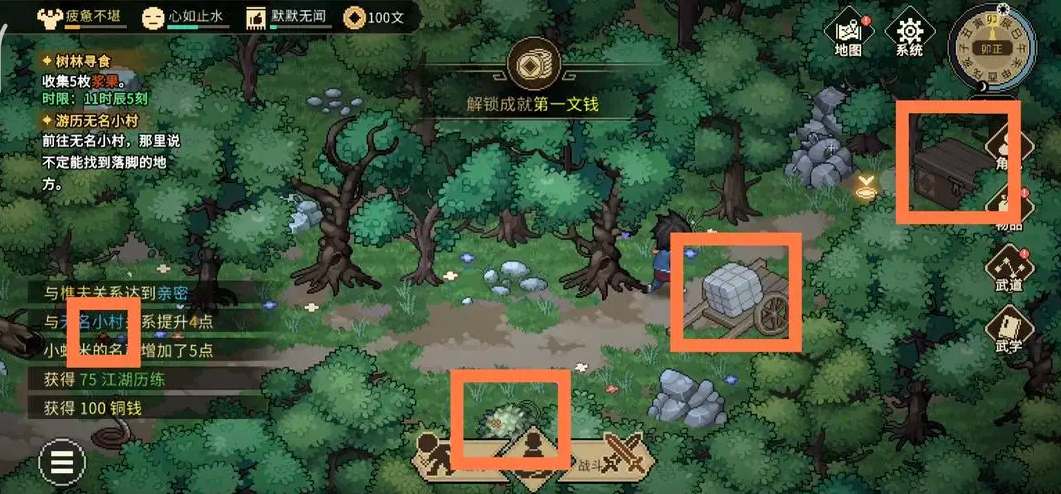 5、完成教程后去右上触发樵夫剧情,选择帮助他,完成战斗后可解锁无名小村。