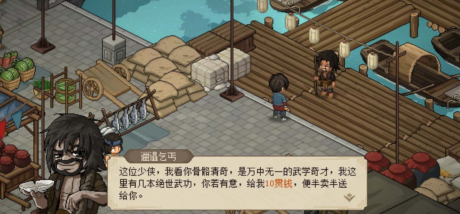 当所持金钱超过500时进入小村触发,这个任务不管选什么都会损失500金钱,后面的任务能拿回来,选择不拿钱可获得秘籍叫花棒法。