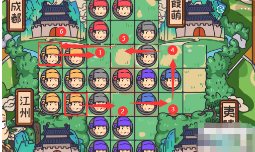 5、然后将剩下的红色士兵走完之后再走紫色最里面的士兵。