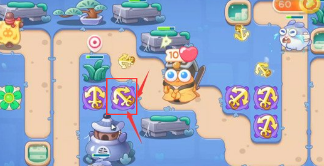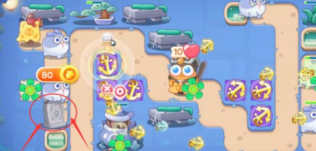 3、将第二个船锚塔升满级,两个船锚塔优先攻击上方的丹炉。