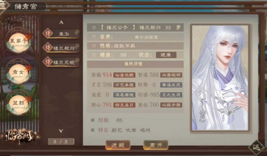 易次元临帝阙怎么收男妃子?在这款游戏中玩家扮演的身份是皇帝,跟喜欢的角色刷够好感度并且完成一系列剧情后就可以将其收入后宫了。男角色也是可以这样攻略的,下面为大家介绍一下游戏中有哪些可以加入后宫的男角色,以及攻略他们需要满足的条件。