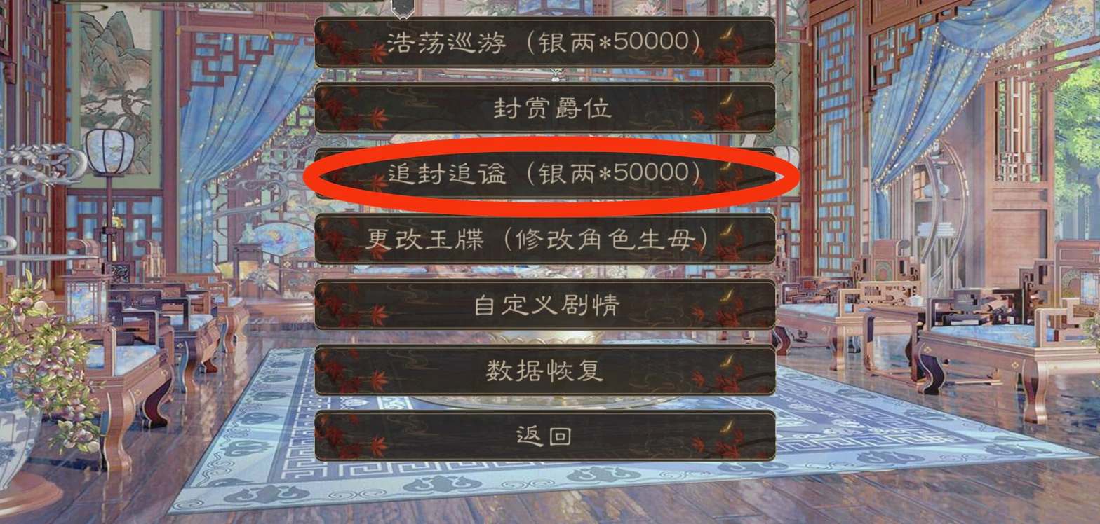 紫宸殿选择追封追谥,追封嫔妃/皇子怀念值+10;