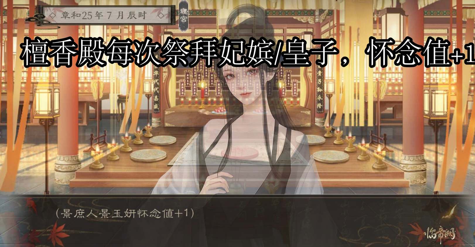 东西六宫前往檀香殿,选择祭拜妃嫔/皇子可怀念值+1;
