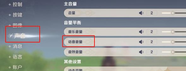 3、进入设置页面后我们点击【声音】,然后再声音设置中反复调节【语音音量】。