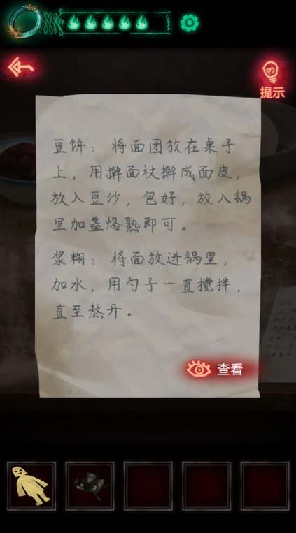 1、看完剧情拿到符纸人,进入房间将放在供桌上,用毛笔画鬼宿图案写状纸,