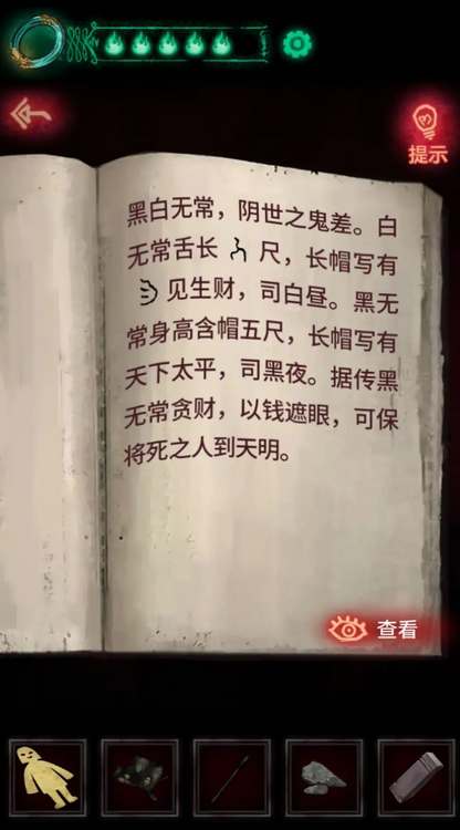 19、回黑白无常场景,调整指针拿到符纸人。退出来再次写字后小纸人和笔都被拿走了。