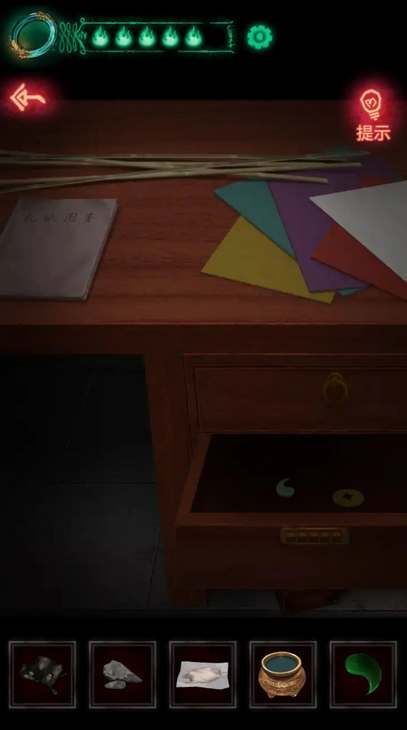 5、左上桌子打开第一个抽屉触发高能,获得毛笔。