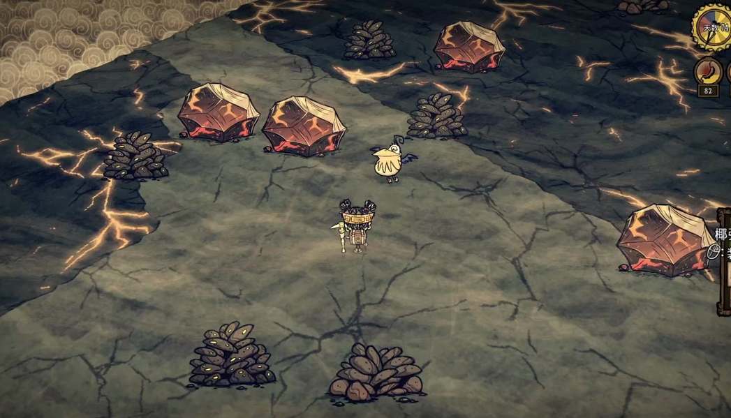 在火山喷发的时候,玩家可以带着冰帽进入火山里,陨石可以摧毁大块黑曜石和熔岩矿可以获得大量黑曜石和矿石