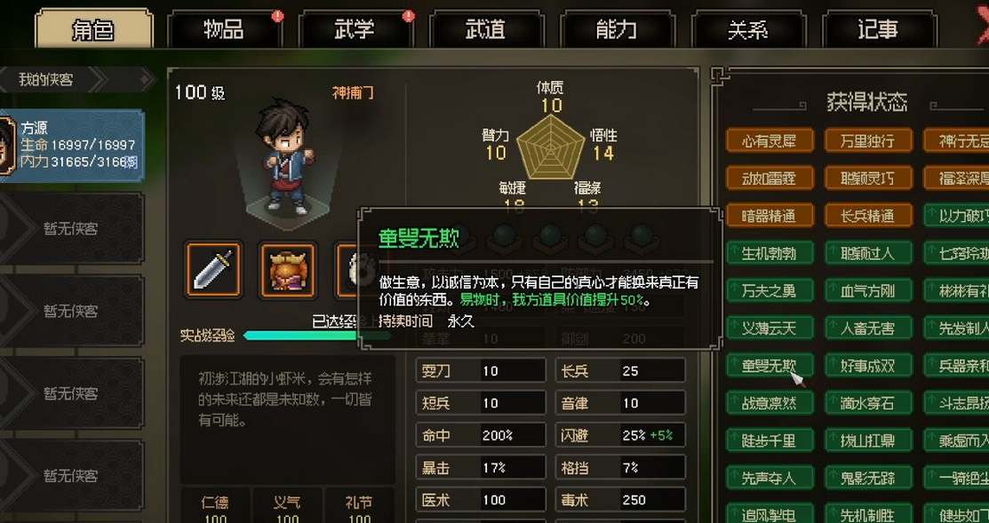 加入队伍后,主角在曼陀罗2格范围内可以增加主角15%格挡、10%闪避,集气速度提升5%。