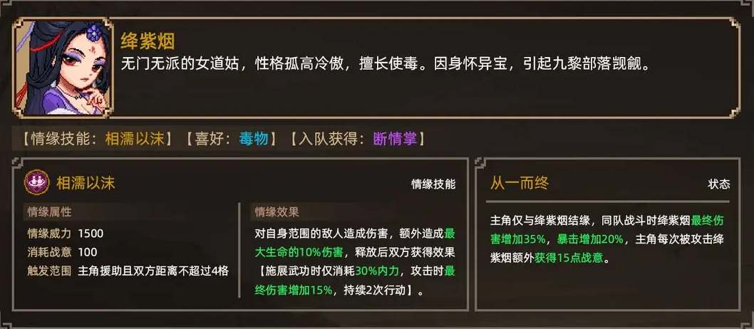 结缘后获得【从一而终】状态,情缘技能【相濡以沫】