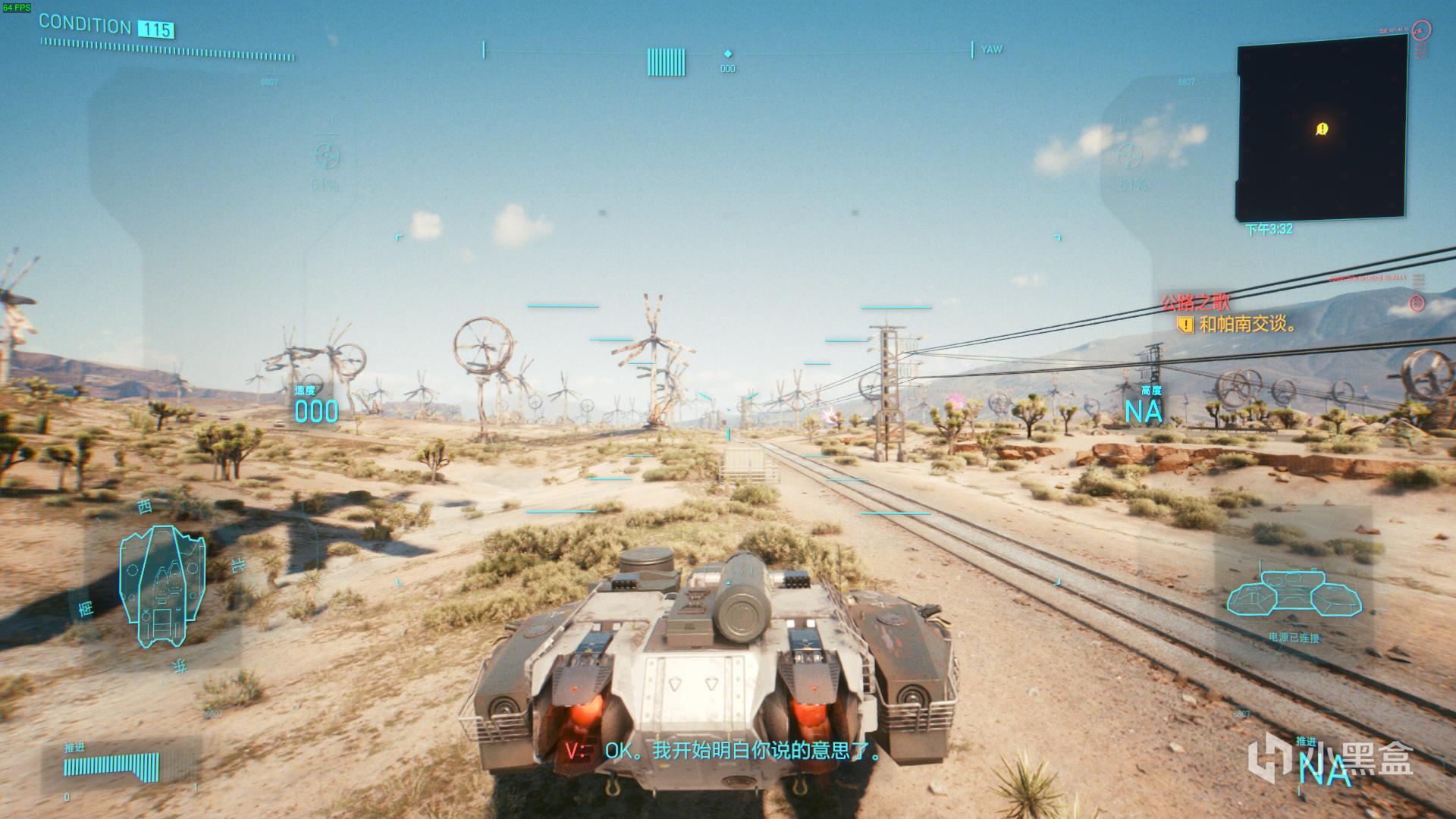 随着主线的进行,你会认识到一个女性流浪者——帕南 帕尔默,当主线完成之后,她会给你发消息让你帮忙,之后触发她的支线任务,每次进行支线的时候不要和她对着干,帮她说话,然后就会有第一个转折点,就是帮她救回流浪者头头之后会在一个小屋子里躲避沙尘暴,在这里你需要克制住自己,不要耍流氓,等之后的任务她回向你表达心意,你不用拒绝,她给你发消息也尽量回的暧昧和支持。等到支线的任务“公路之歌”,如果你之前培养感情正常,可以和帕男在坦克上搞“坦克震”。