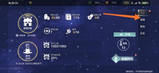 3、接着玩家点击管理按钮,再选择家园回收。