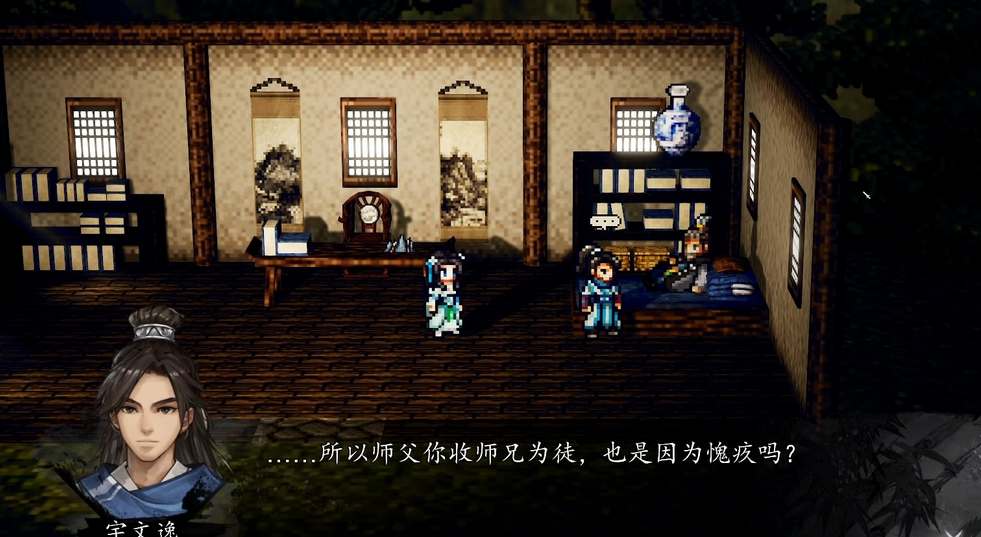 在左下角的树旁边再次找到她,可以选择吓吓她或者哄哄她,获得武学心得。