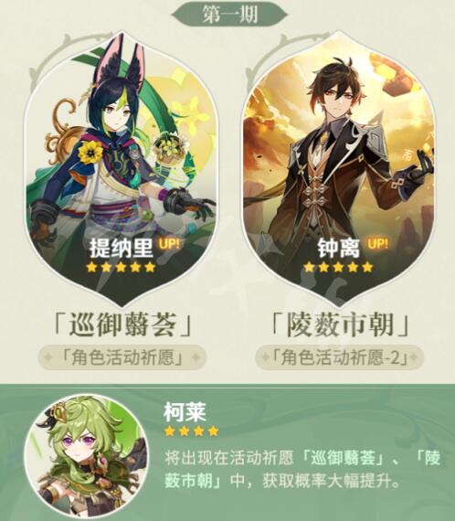 1、3.0版本up池第一期的角色是缇纳里、钟离。