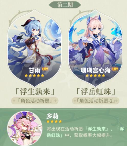1、3.0版本up池第二期角色:甘雨、珊瑚宫心海。