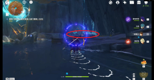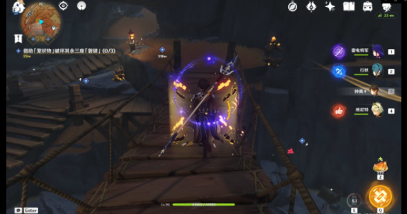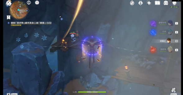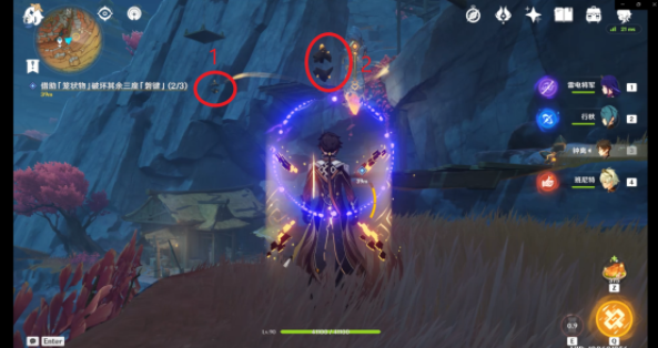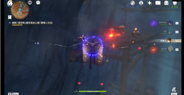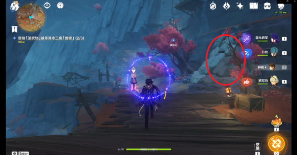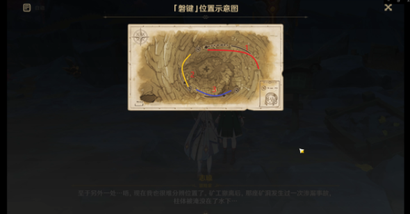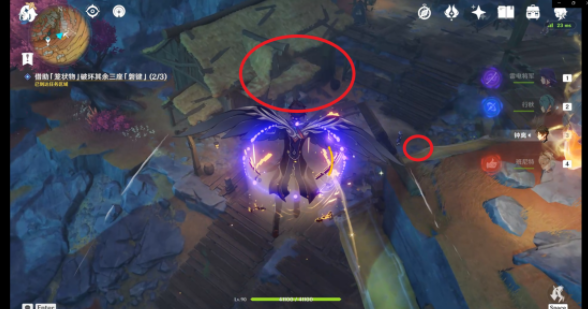 破坏第一处的「磐键」后可以使用跳跃平台(红圈)出去并前往第二处「磐键」方向(根据任务指示)但是如果开启了层岩巨渊七天神像的可以使用七天神像传送。