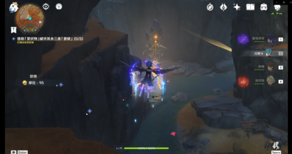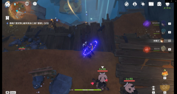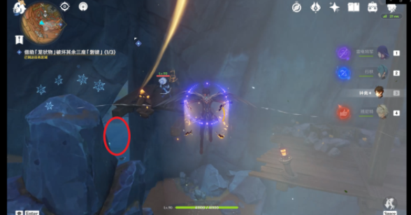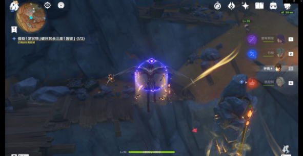到达第三处「磐键」后可以击碎此大型碎石(里面是一个跳跃平台)快速到达上方。