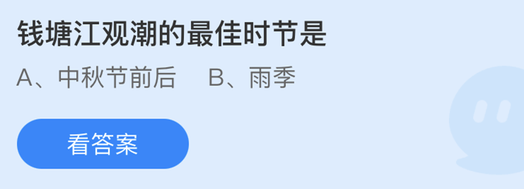 支付宝蚂蚁庄园小课堂4月3日的第一个问题是:钱塘江观潮的最佳时节是?下面小编就为大家带来蚂蚁庄园4.3答案,一起来看下正确回答吧。