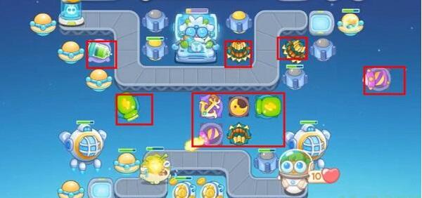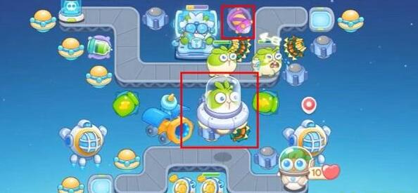 3、然后我们要小心ufo兔兔,防空比较慢,它会将我们的防御塔随机转换到另一位置,如图所示。