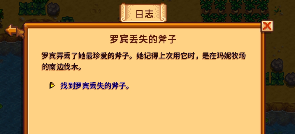 星露谷物语罗宾丢失的斧子是游戏中的一个任务,在第一年春天的某一天会通过邮箱触发剧情,玩家可以前往玛尼牧场下方的区域山崖处找到斧子,然后拿回去还给罗宾。下面为大家详细介绍斧子的位置以及交任务的方法。