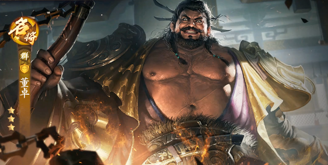当铁胆技能升到4级时,有回血和增加伤害的buff,该buff和董卓的触发技能结合,使其防御性达到最高,此时董卓能够抵挡住敌方的高压输出,加大我方后排武将的生存时间。