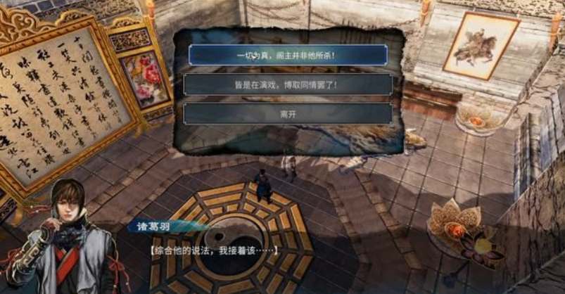 2、观看完剧情后与二阁主对话了解故事来龙去脉,然后前往凉亭。