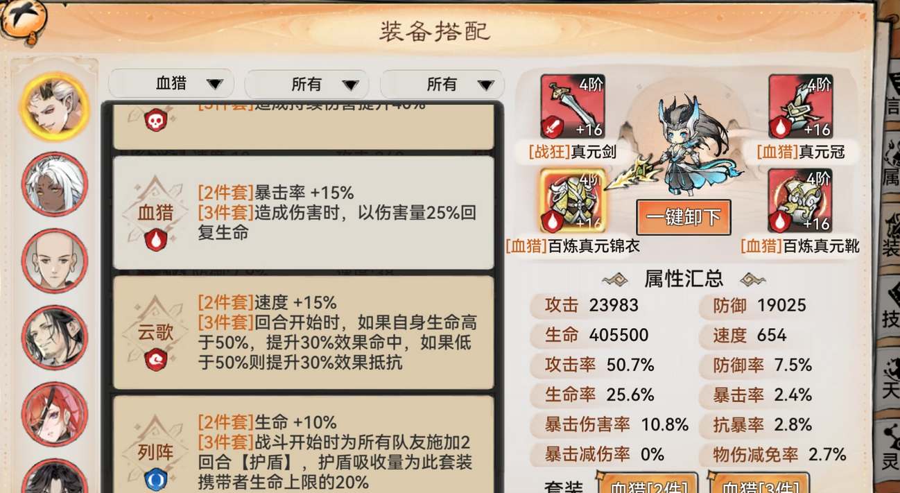 血猎套:提高续航,配合免伤被动生存能力强,但是怕禁疗。