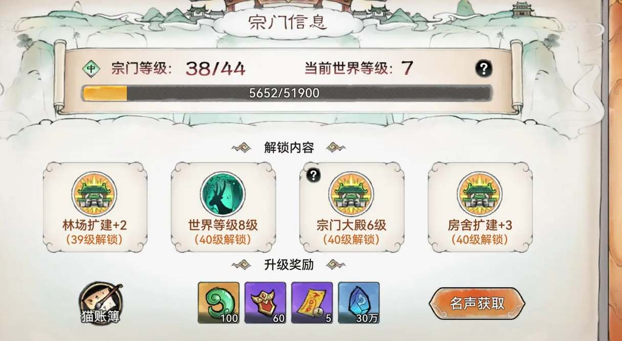 2、宗门等级提升