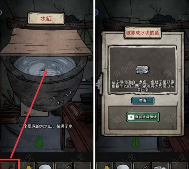 7、把鱼放在锅里,用热水融化后,在鱼肚子里获得钥匙。