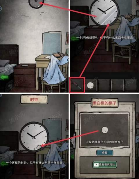 11、查看柜子上的单词表,外婆的单词是grandmother,这个是箱子的密码,打开获得螺丝刀和黑白棋的棋子。