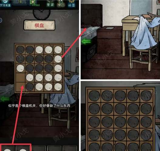 13、点击床上的棋盘机关并放入棋子完成小游戏,让棋子全部变白或者变黑就行。
