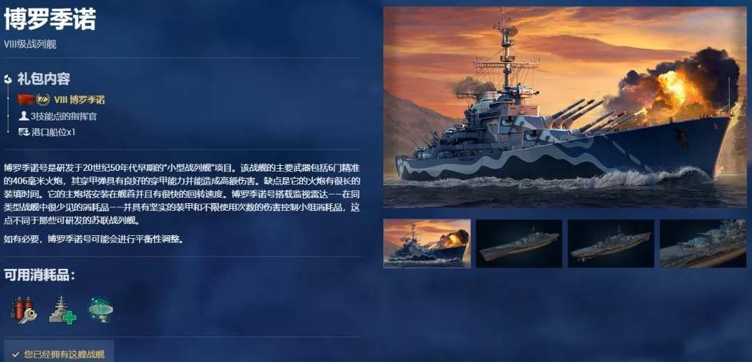 8级战列舰金币船中,博罗季诺是非常值得玩家们去购买的一艘船,如果有足够的金币非常推荐玩家们入手。