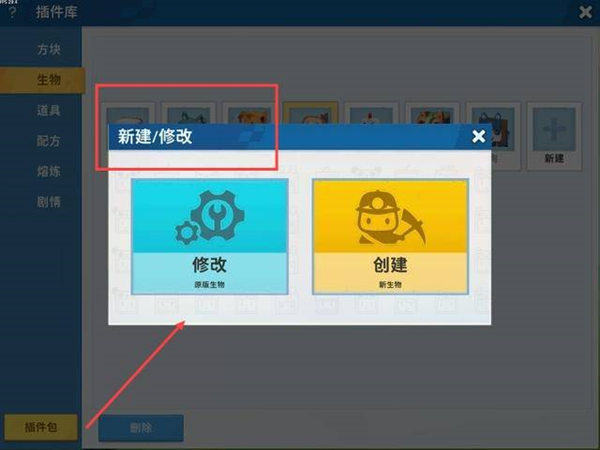 1、进入插件库,选择生物,在这里可以选择修改或者创建,最好是选择修改。