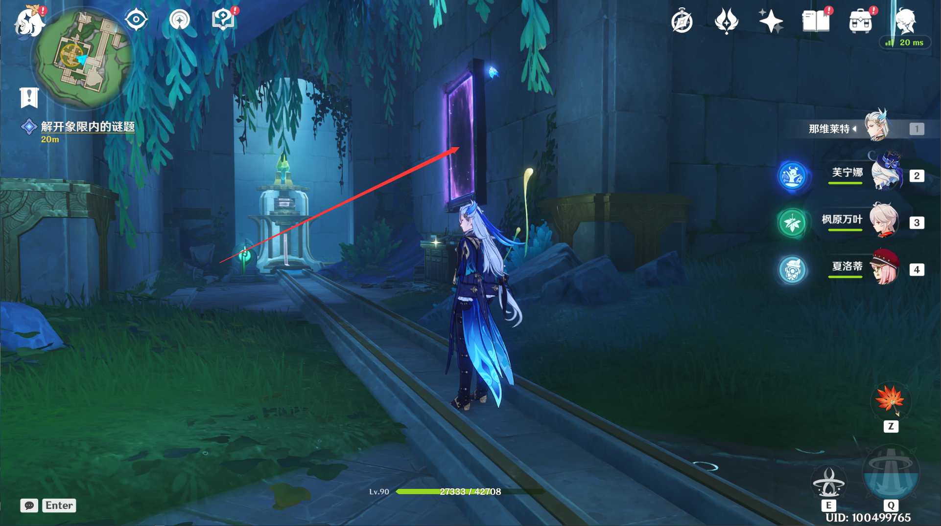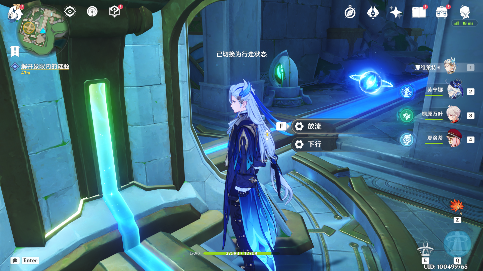 16.返回大厅后会有一个机关传送圈,我们可以回到之前需要“特殊的钥匙”开启闸门的地方,消耗钥匙开门,把机关降下去,放流,连通最后这条水道。