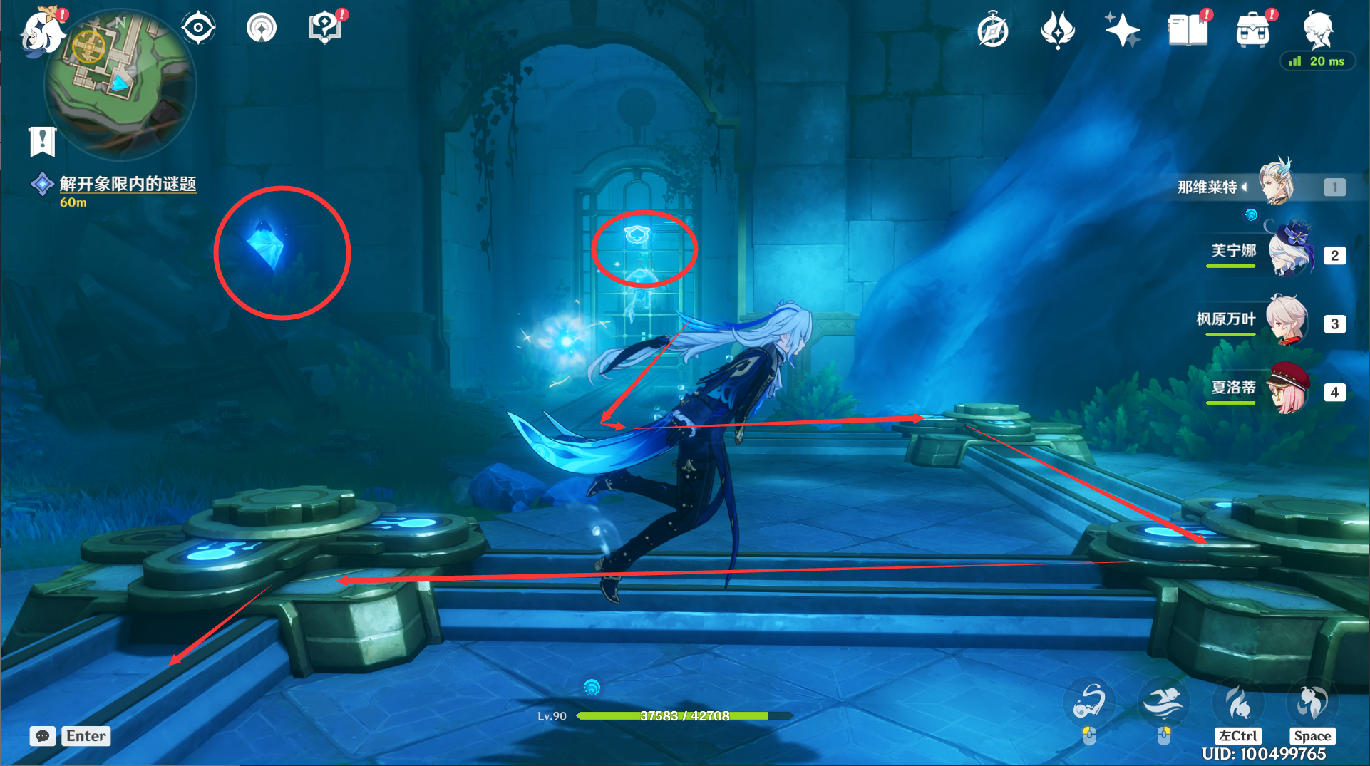 9.拾取到特殊的钥匙:这里还有个水神瞳,就是刚才我们进来的机关旁边。