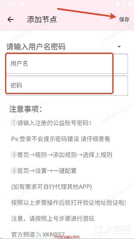 6、输入用户名和密码,点击右上角保存按钮