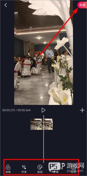 4、编辑完成后点击右上角合成按钮,预览效果满意后即可保存至手机相册。