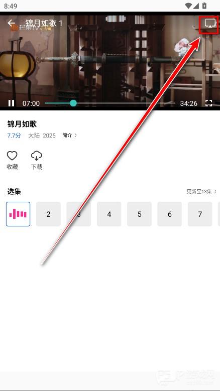 2.点击投屏图标。