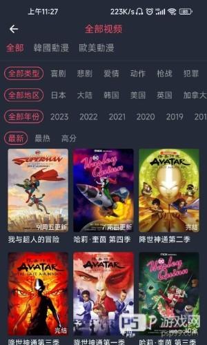 第四步:软件还提供了筛选的功能,之后根据年份、地区、类型等分类进行筛选。