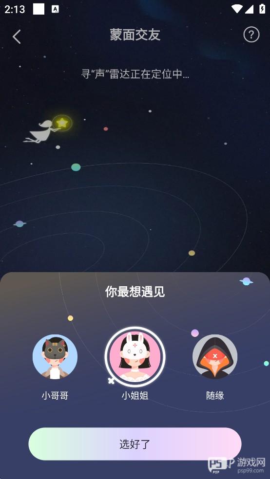 匿名蒙面交友,畅所欲言来一场不看脸的约会让你在喧嚣的城市中有一个soulmate一起来畅聊柴米油盐、诗与远方。