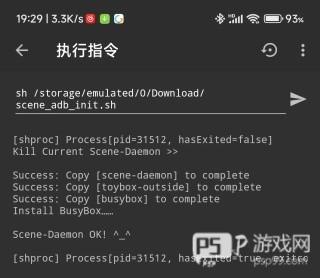 我们打开黑阈,点击左上角三个点,选择输入指令,输入sh /storage/emulated/0/Download/scene_adb_init.sh即可激活